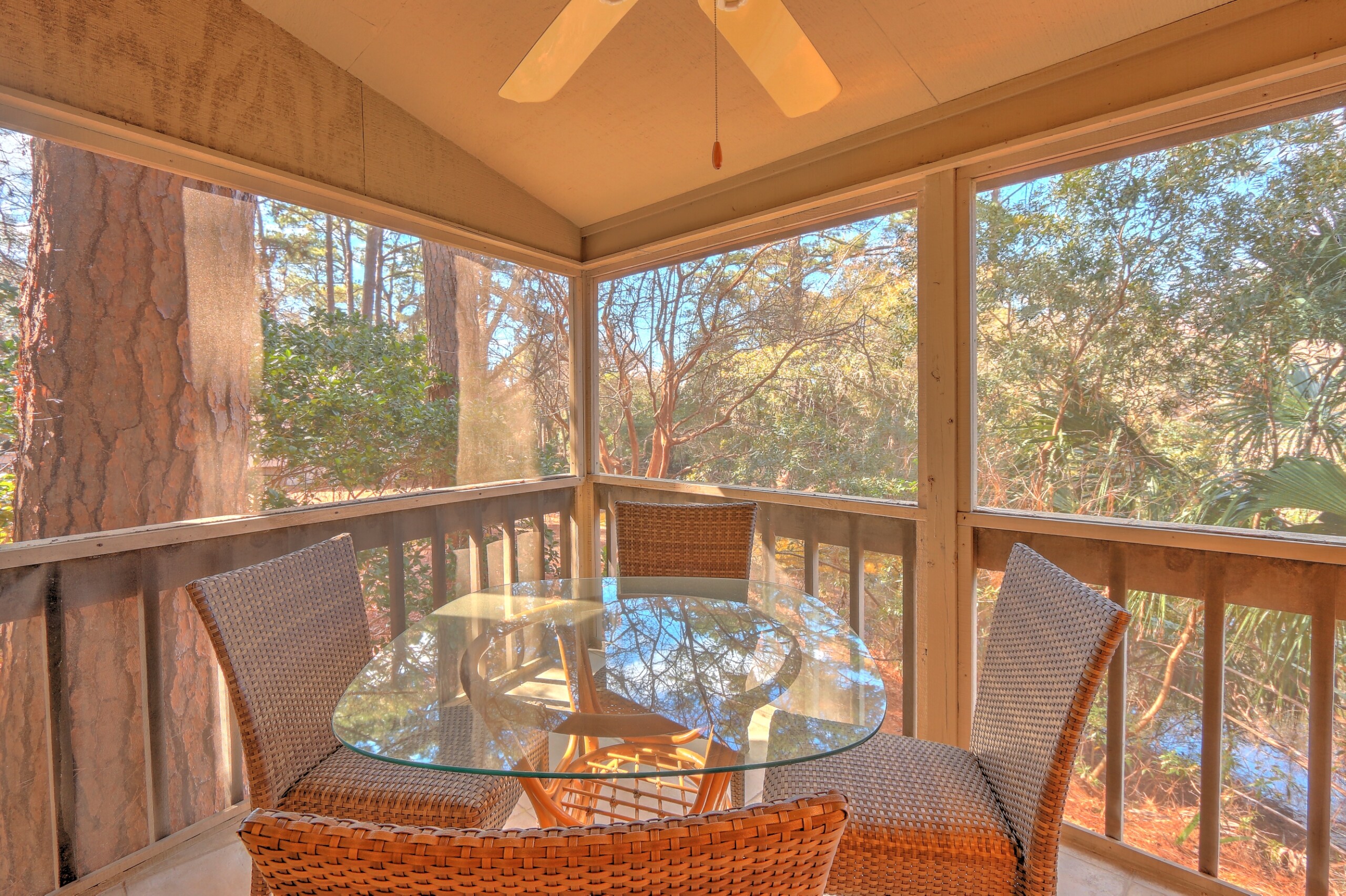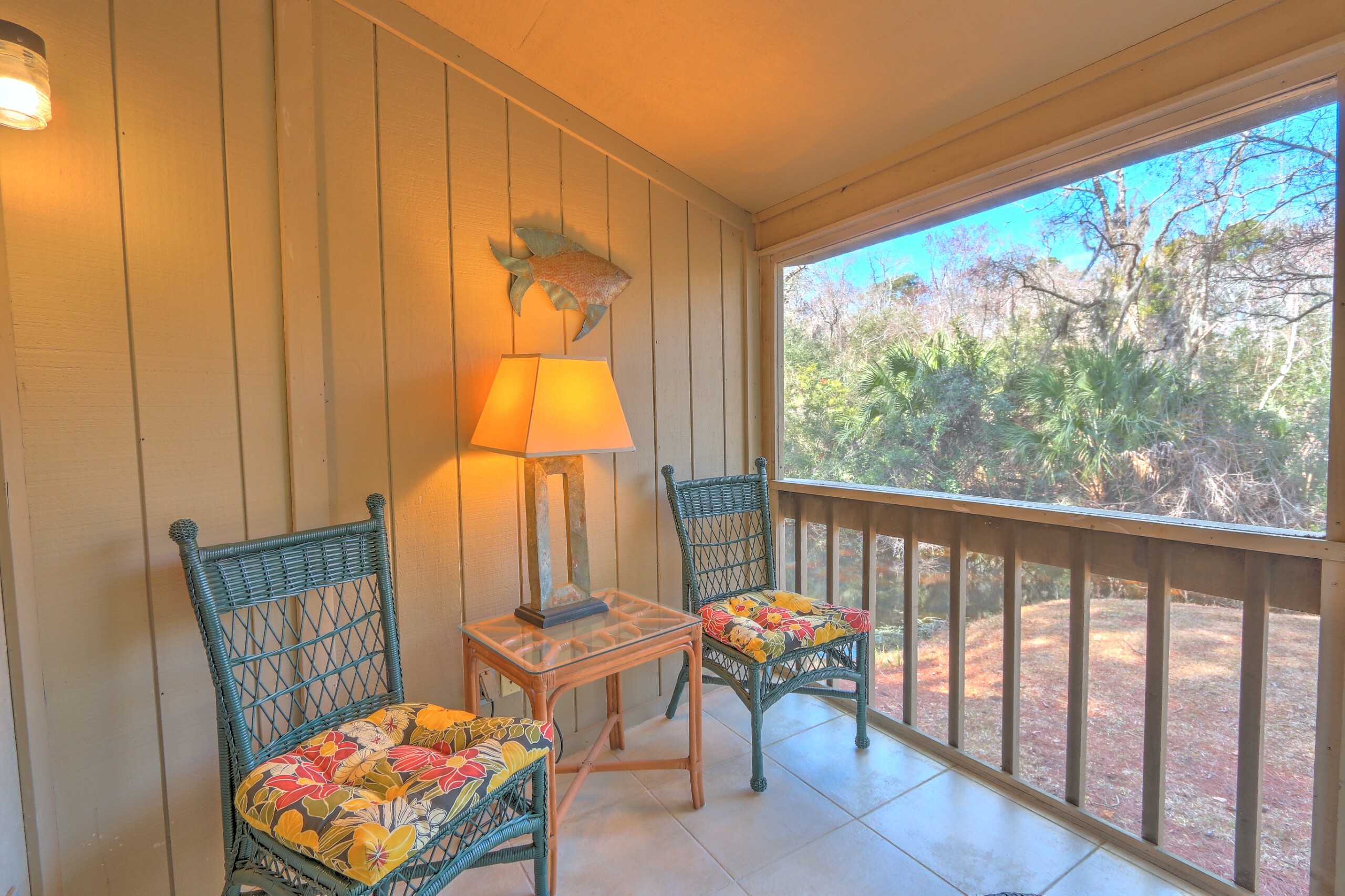 Step into this cozy two-bedroom bungalow surrounded by the natural beauty of Sea Pines. Designed for comfort and relaxation, the home features two private screened-in porches overlooking a tranquil lagoon — the perfect spot to enjoy your morning coffee or unwind after a day at the beach.